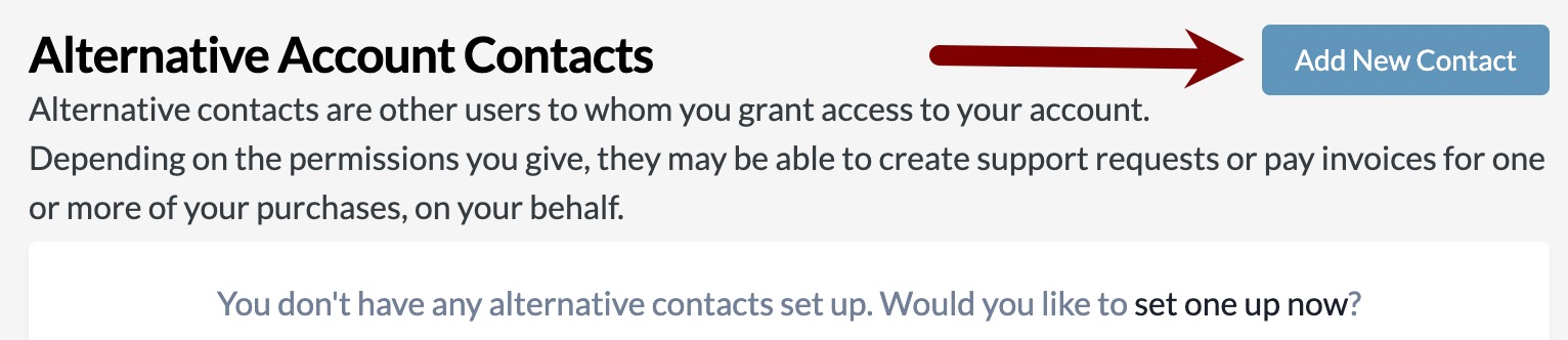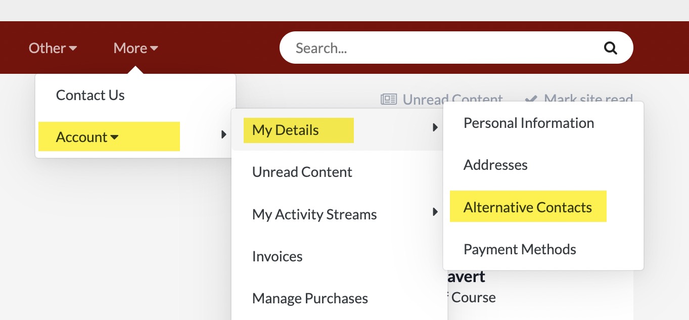 Once they have registered, go to Account/My Details/Alternative Contacts. (The Account link might be nested under the More menu tab)