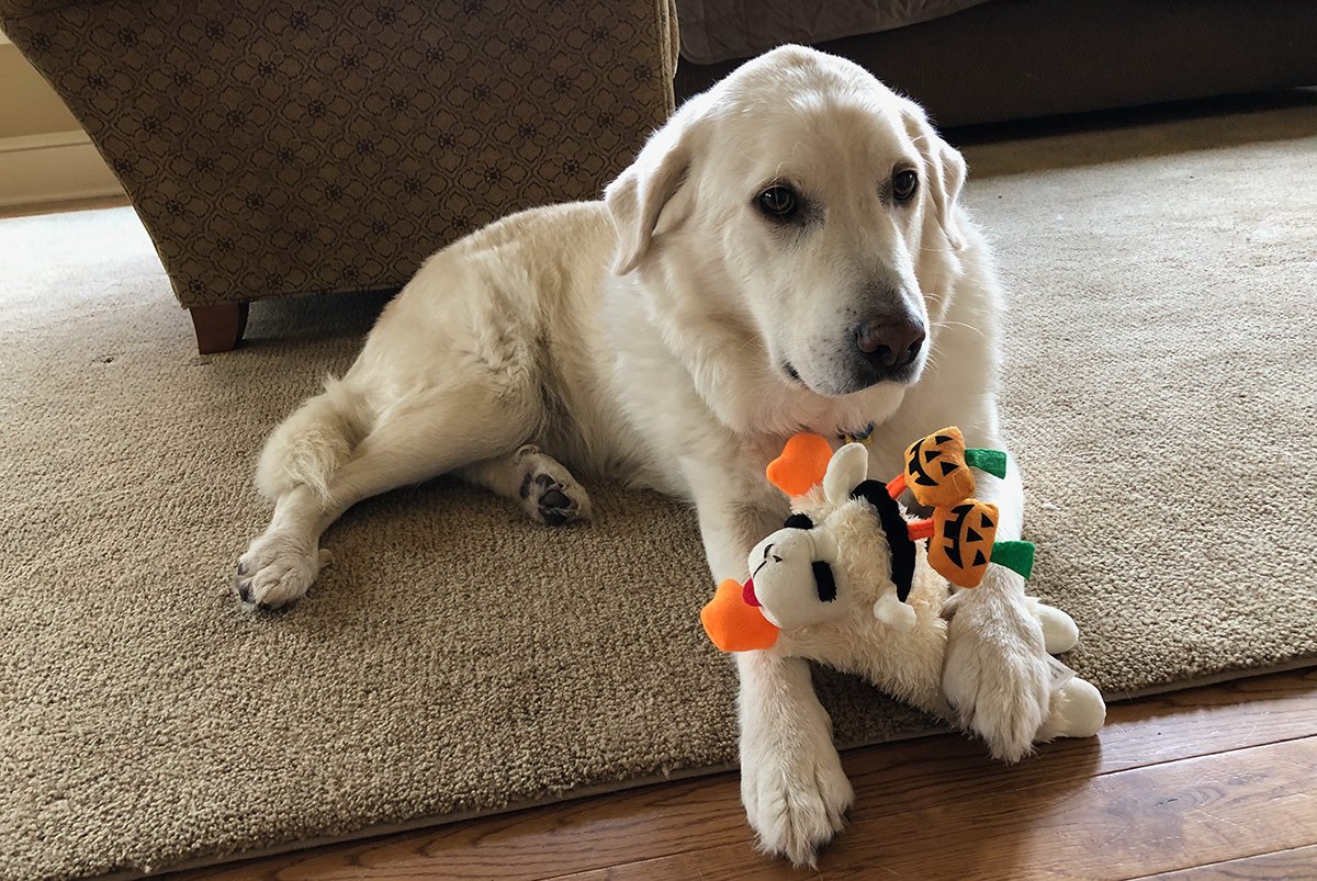 Pyrs are working livestock guardian dogs, and as such Frosty was no nonsense, independent and stubborn, very different from all our other dogs. He didn’t see the value in obeying commands or doing tricks, so refused to learn them. Food and treats didn’t motivate him. He didn’t play fetch or chase frisbees, or play much at all other than zone out with his favorite Lamb Chop stuffies. He liked to run, by himself or with his partner-in-crime Marley, at times to our consternation. And he was always ready for a long walk with me.