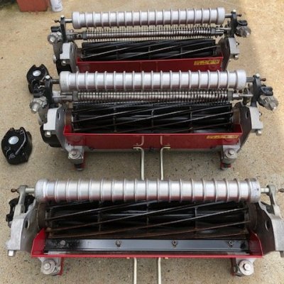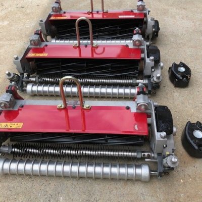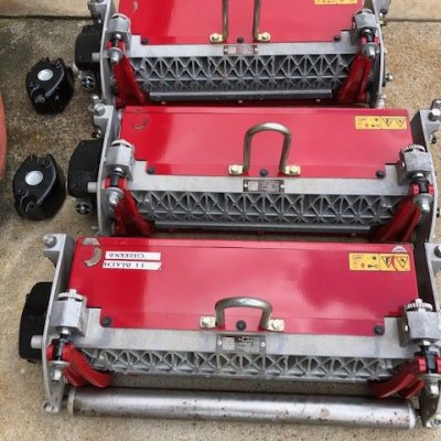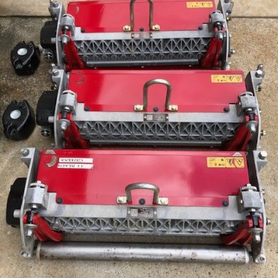 (3) Model 04654 11 Blade Reels, Only 2 Reels have the Toro Groomers as you can see in the pictures. Please note there is Only 2 Groomers. 1 Reel Doesn't have the Toro Groomer. I do not have the 3rd Groomer.