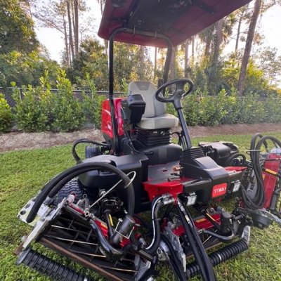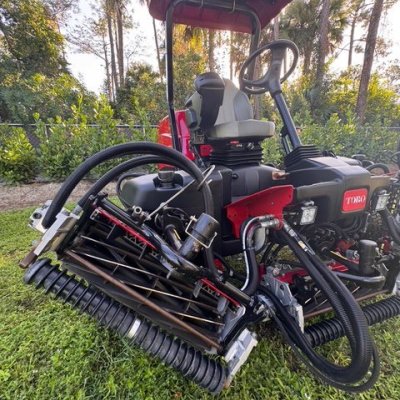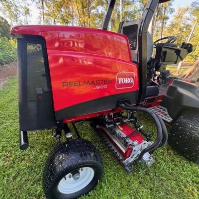 Excellent 2020 Toro Reelmaster 5510-D Model 03607 with great reels and 2495.8 hours that runs like new. Has the cooling roof and fan accessory. Gently used and in excellent condition. Reels are in excellent condition and with brush rollers. Please contact us for additional details or package deals.