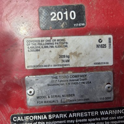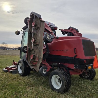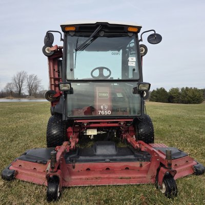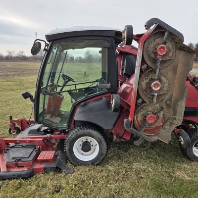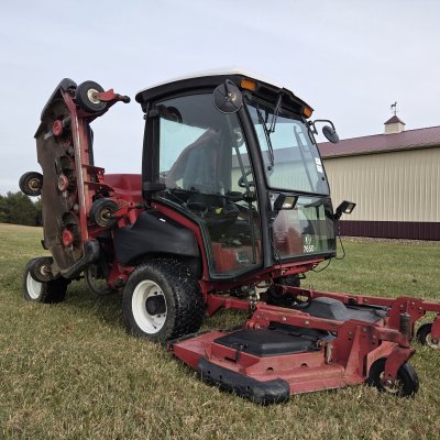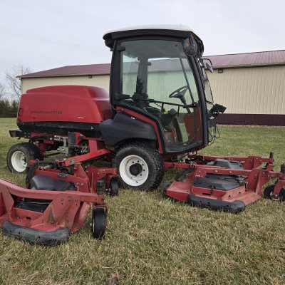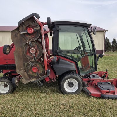 The 2010 Toro 5910 is a large fairway mower featuring a powerful 99 hp Cummins diesel engine, a flexible cutting width up to 192 inches, and advanced features InfoCenter™ for system diagnostics built on a heavy-duty welded steel frame for professional turf maintenance. This unit features full cab a/c ,heat, wipers with 3768 hrs The engine oil and filter were just changed and it has a newer air filter and newer blades. A/C. Heat. Works great!!!!!
