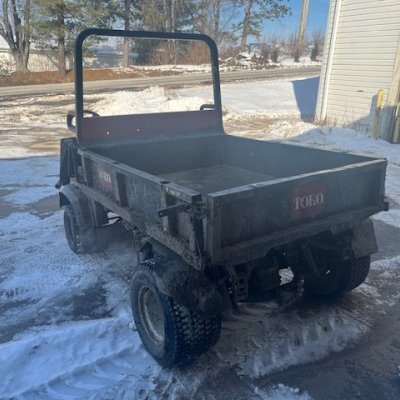 2WD workman equipped with 31HP Daihatsu engine. Hydraulic lift-controlled dump box.