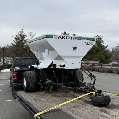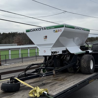 -Great in between size! Tow with a smaller tractor, Workman or Pro Gator. Topdress fairways, fields, or even greens. Low ground PSI with 4 tires!