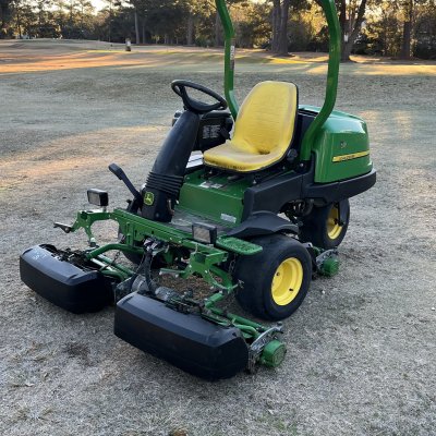2017 John Deere 2500E Hybrid. 2430hrs used in very good condition. 14 blade reels set at.155 for greens. Gas engine.