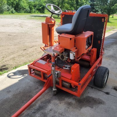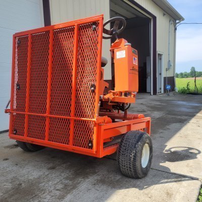 Has dual rollers. Chains greased and checked. New seat and battery installed. TRANSPORT TRAILER HAS NEW RUBBER ON GATE.