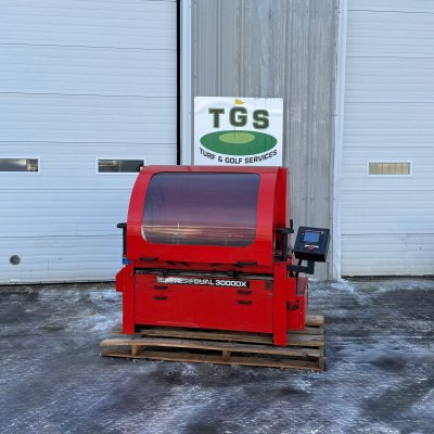 Is a top of the line grinder, automatic, in-frame reel grinder designed for sharpening turf equipment up to 36 inches long, with touch screen controls, hood, rare door and with lift gate.
