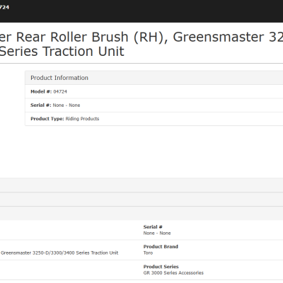 Toro 04724 DPA Reel Mower Rear Roller Brush Rh Greensmaster 3250 3300 3400