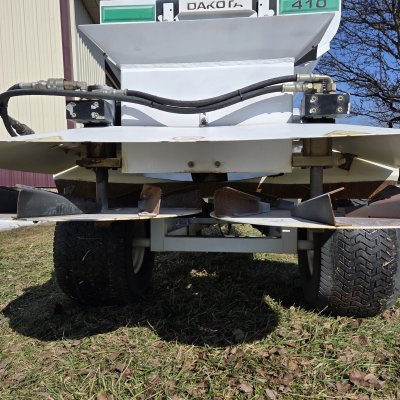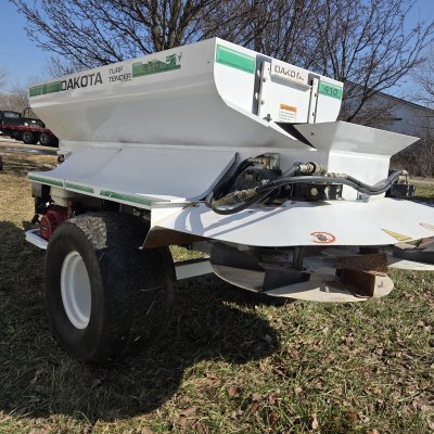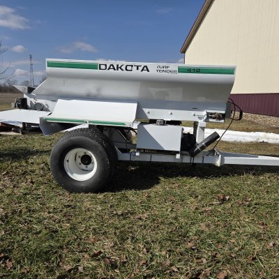 Dakota 410 pull behind topdresser . Honda powered with electric start. Unit has been cleaned up comes with electronic controller . Tire shows some wear as shown below.