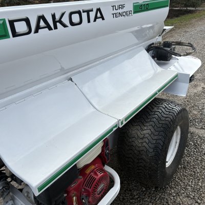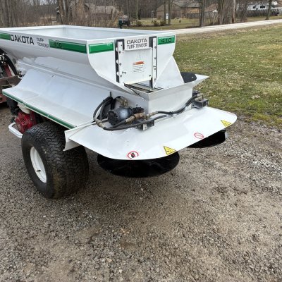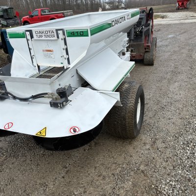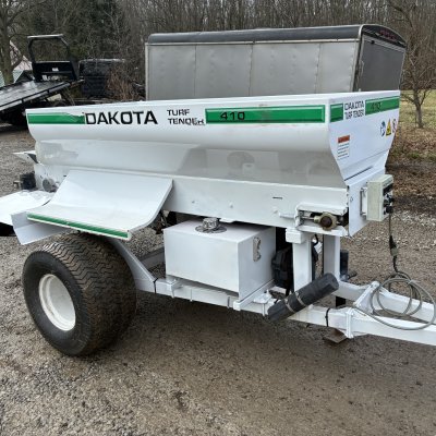 Dakota 410 tow behind self contained topdresser . Cleaned up and ready to topdress .Electric start currently has a new battery