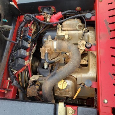Cleaned up. Runs great. NEW rear rake. 3wd with 16hp Vanguard gas engine.