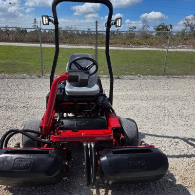 2018 Toro Greensmaster 3150Q Triplex Greens Mower Model 04358 with 1588 hours, light kit, buckets, 14 bladed DPA reels with reversible groomer brushes. This Mower just serviced with all new oils, filters and ready to cut.