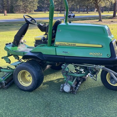 John Deere 8000A, w/ 1750 hrs. Diesel powered. 11 blade reels set at .375