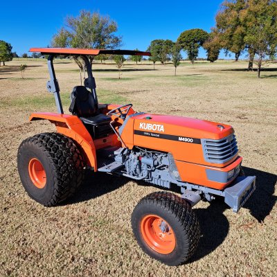 Very nice Kubota M4900 2WD for sale. Only 1025hrs!! Comes equipped with Remote hydraulics, Shuttle Shift, 12 speed transmission, new Kubota Suspension Seat, new Canopy, like new turf tires, tow hitch, front bumper weight, down draft exhaust,and all fluids and filters are new. Also comes with TWO spare rear tire and wheels as seen in pictures.