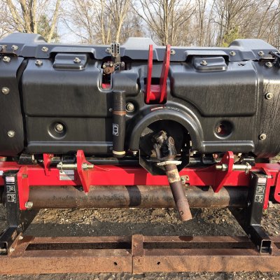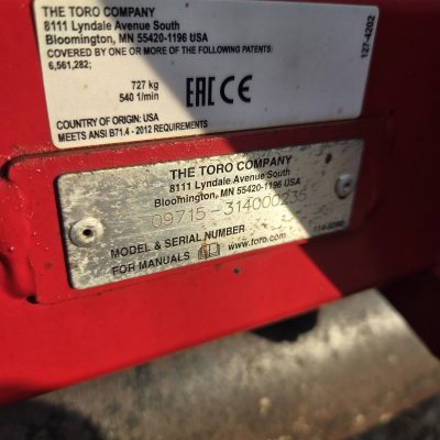 The 2014 Toro ProCore 864 (Model 09715) is a 64 inch tractor mounted designed for high-productivity aeration. It features a 5-inch maximum aeration depth, 8 tine heads 4 tines per head, and requires a 35 HP (minimum 30 HP) tractor with a 540 RPM PTO. It weighs approximately 1,575 lbs. Turf guards are good and it will come with new split tines ( not shown ) . Unit has been tested and very operational