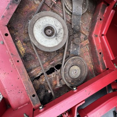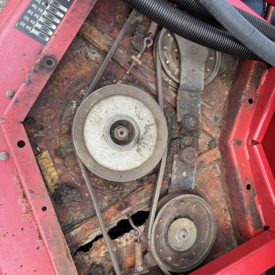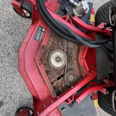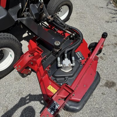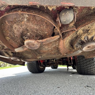 This unit has 1 issue and is priced accordingly. The front deck shell need to be replaced or repaired. The mower was stored with wet grass under the front shield and it rotted the inside of the deck, see pics. It cannot be used as it, the front deck needs repair. Side decks are in great shape