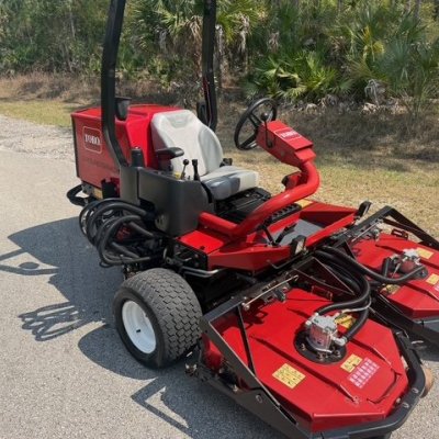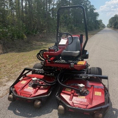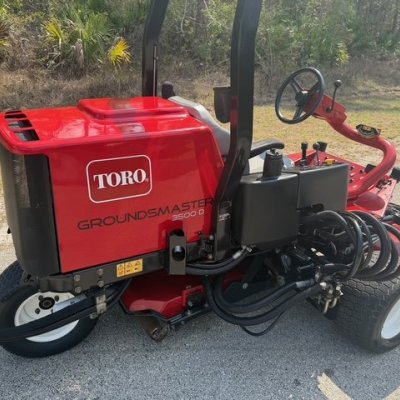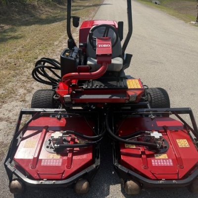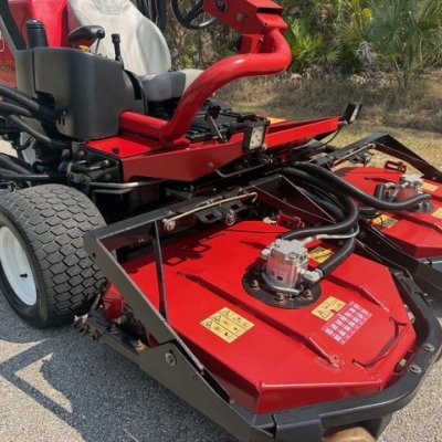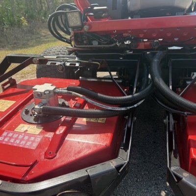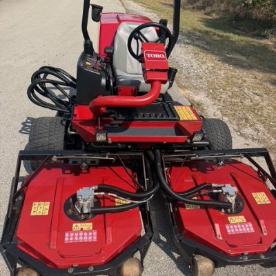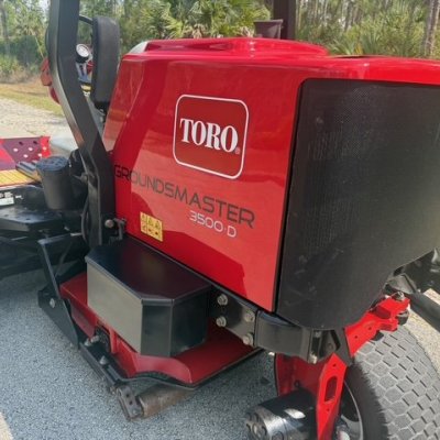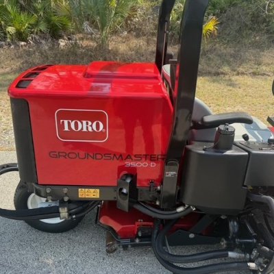 We have a gorgeous 2019 Groundsmaster 3500-D with 1278 hours. It has the sidewinder controls to help mow wide areas you can't reach normally. Works perfectly well and is in excellent condition. It has the rotary blades ready to go. Perfect for any turf and slopes. The paint is in excellent condition and the unit has lights. Fresh oil change, air filters, new glow plugs, and versatile. Please contact us for package deals.