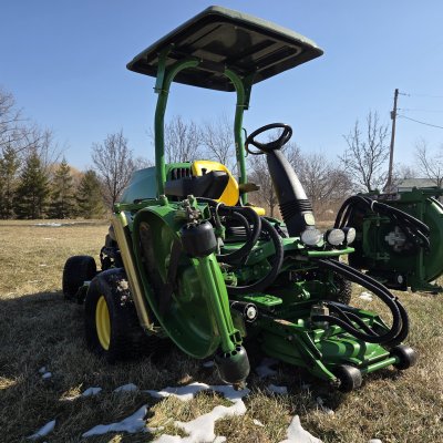 NEW air filter. NEW oil filter and fluids. NEW blades. NEW bearings. NEW seals. NEW cups in blade spindles. NEW hydraulic cylinder on driver's side (front.) NEW front and rear rollers. Many NEW height adjusters. Ready to mow!