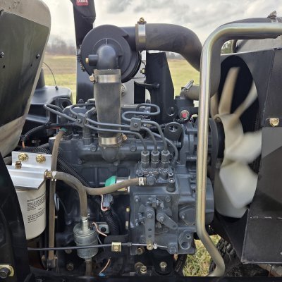 Several NEW rear rollers and NEW brackets. NEW blades. NEW air filter. Greased. Hood has a crack as shown below. Rear tire shows wear on the sides. Kubota diesel 3wd machine runs and operates as it should.