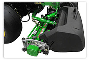 Since the unit attaches directly to the cutting unit, that can mean added weight to the unit as the catcher fills with clippings. Therefore, Deere also now offers an easy-to-use weight-transfer system.