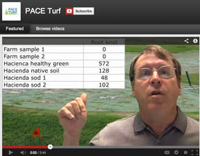 In the video, Stowell refers to nematode damage in fresh A4 creeping bentgrass sod at Hacienda Country Club in La Habra Heights, Calif.