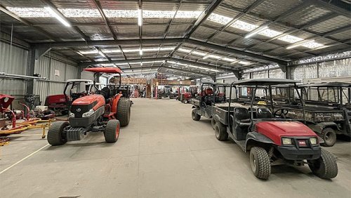 Lithium battery-powered golf cars and motion-sensor lighting help reduce energy use.