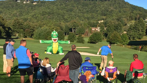 A Day 2 skills challenge back at Sky Valley raises money to support improvements to Abraham Baldwin Agricultural College's Forest Lakes Golf Club in Tifton, Georgia. More than just a closest-to-the-hole competition, the skills challenge includes putting and chipping contests, a par-3 competition and an event called the "Dinosaur Shot" which tests each player's ability to nail a 15-foot inflatable dinosaur from 75 yards away.