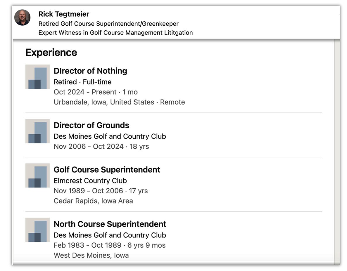 That is the case for Rick Tegtmeier, CGCS, who retired Oct. 31 as director of grounds from Des Moines (Iowa) Golf and Country Club.